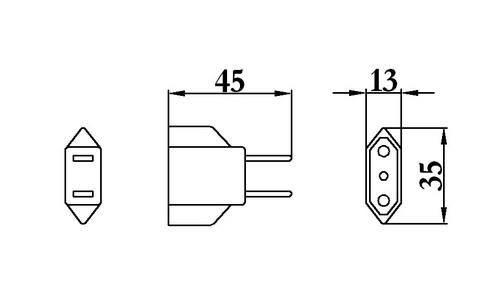 Description:Adaptor 2 Flat Pin Plug, 2 Round Pin Receptacle